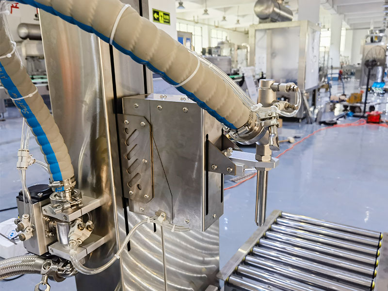 3、真空回吸防滴漏配置,在灌裝結束后,灌裝頭可自動關閉執行真空回吸功能,防止殘液滴落,保持桶口清潔,避免腐蝕與污染。